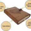 vintage handmade leather journal. Crafted with genuine leather, it radiates authenticity and charm, perfect for those who appreciate classic craftsmanship. The premium antique lock closure adds a touch of elegance and security, ensuring your thoughts and memories are safeguarded within its pages. Inside, you’ll discover 200 White handmade pages, providing ample space for your musings, sketches, and stories to unfold. Whether it’s for journaling, sketching, or planning, this versatile journal is a timeless companion for your creative endeavors. Treat yourself or a loved one to this exquisite piece, a celebration of tradition and creativity